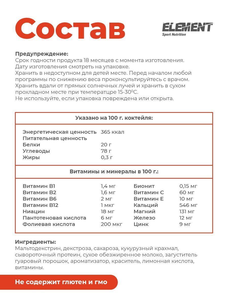 Высокоуглеводный гейнер с насыщенным вкусом содержит 20 г белка и 78 г углеводов на 100 г. Состав и пропорции подобраны так, чтобы все питательные вещества из него по максимуму поспособствовали достижению целей спорта. Сбалансированное содержание белков и углеводов помогает утолить голод, уменьшить мышечную усталость, способствует регенерации мышц и поддержанию здоровья сердца, регулируя ритм сердечных сокращений. Гейнер для быстрого набора массы стимулирует прилив энергии и повышает работоспособность атлета во время физической нагрузки. Важно придерживаться рекомендаций по употреблению Gainer: сразу после тренировки, чтобы обеспечить организму необходимые питательные вещества для восстановления и роста мышц, в качестве перекуса между основными приемами пищи, чтобы поддерживать постоянное поступление питательных веществ. В дни, когда тренировки особенно интенсивны, дополнительный прием может помочь вам справиться с повышенными энергетическими потребностями.